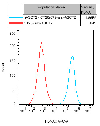 IV. Representative Data![]() Figure 1. Recombinant hASCT2/CT26 stably expressing hASCT2. |