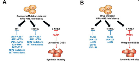 “合成致死”是指兩個(gè)非致死基因同時(shí)被抑制,導(dǎo)致細(xì)胞死亡的現(xiàn)象。當(dāng)兩個(gè)基因同時(shí)失活導(dǎo)致細(xì)胞死亡,但任一基因中的單獨(dú)失活都是無明顯毒性。在發(fā)生突變失活的腫瘤中,通過抑制其合成致死配對(duì)基因,可獲得腫瘤選擇性殺死。